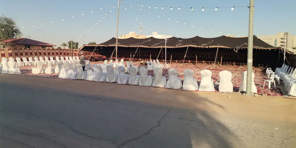 - توفير جميع المستلزمات من خيام، مكيفات، كراسي، طاولات، جلسات شعبية، وسجاد.